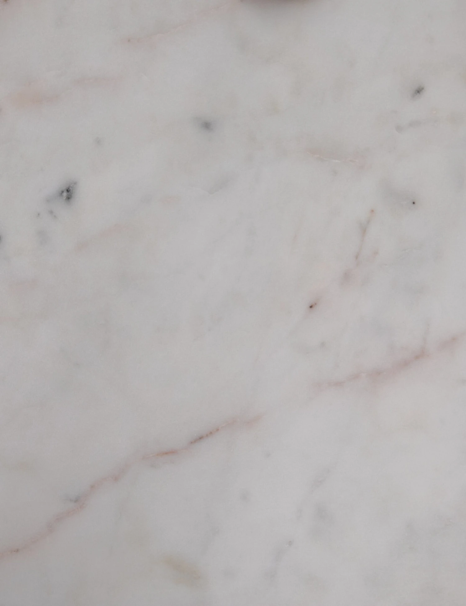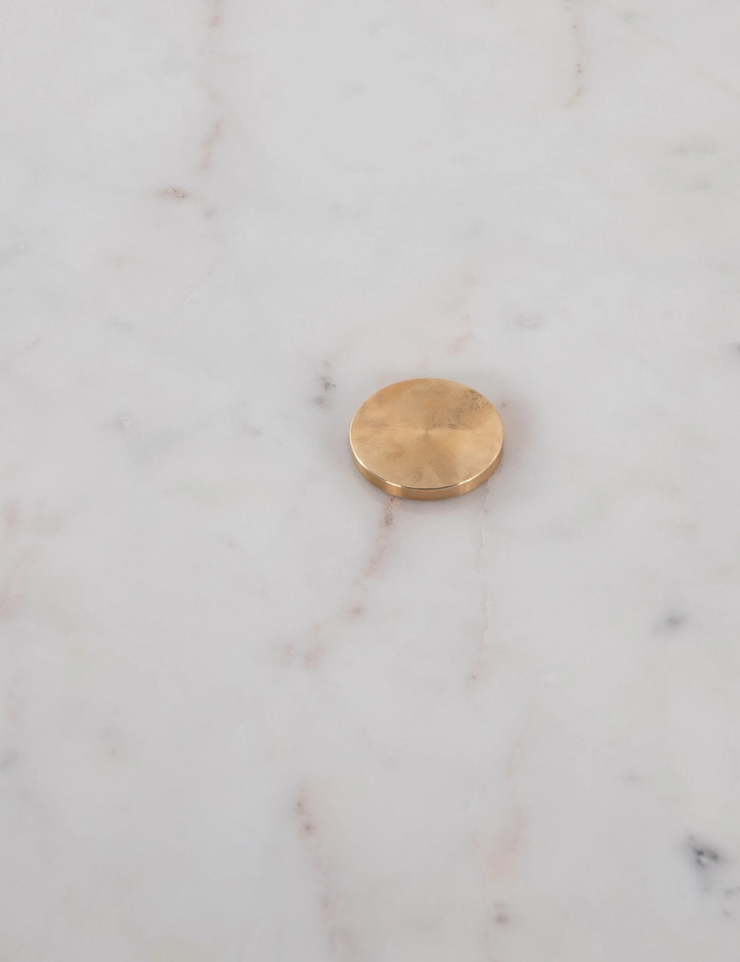 A round, subtly matte marble tabletop seems to float above the natural reclaimed teak base of this coffee table to form a bold centerpiece for your living space. Slim raw brass hardware connects top from base, adding a mid-century touch to this modern piece. Style it with oversized, rounded furniture and tonal, textural rugs.