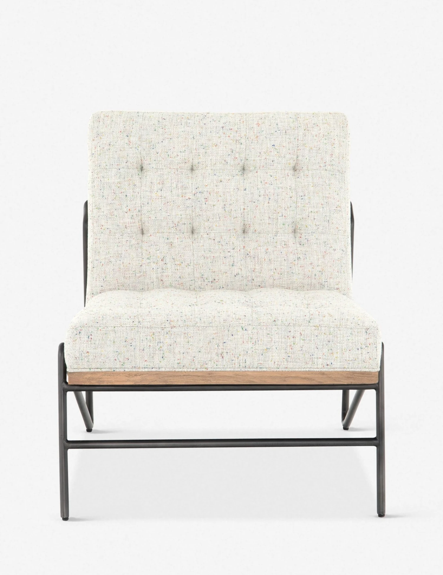 This decorative chair layers in streamlined visual appeal with its slipper design, angular, hairpin iron legs, and solid beechwood frame. Light neutral upholstery features flecks of color for a fresh touch and is finished with button tufting for texture or tan, top-grain leather upholstery beautifully patinas over time and it’s finished with button tufting for texture. This accent chair is a great fit in your bedroom or living room.