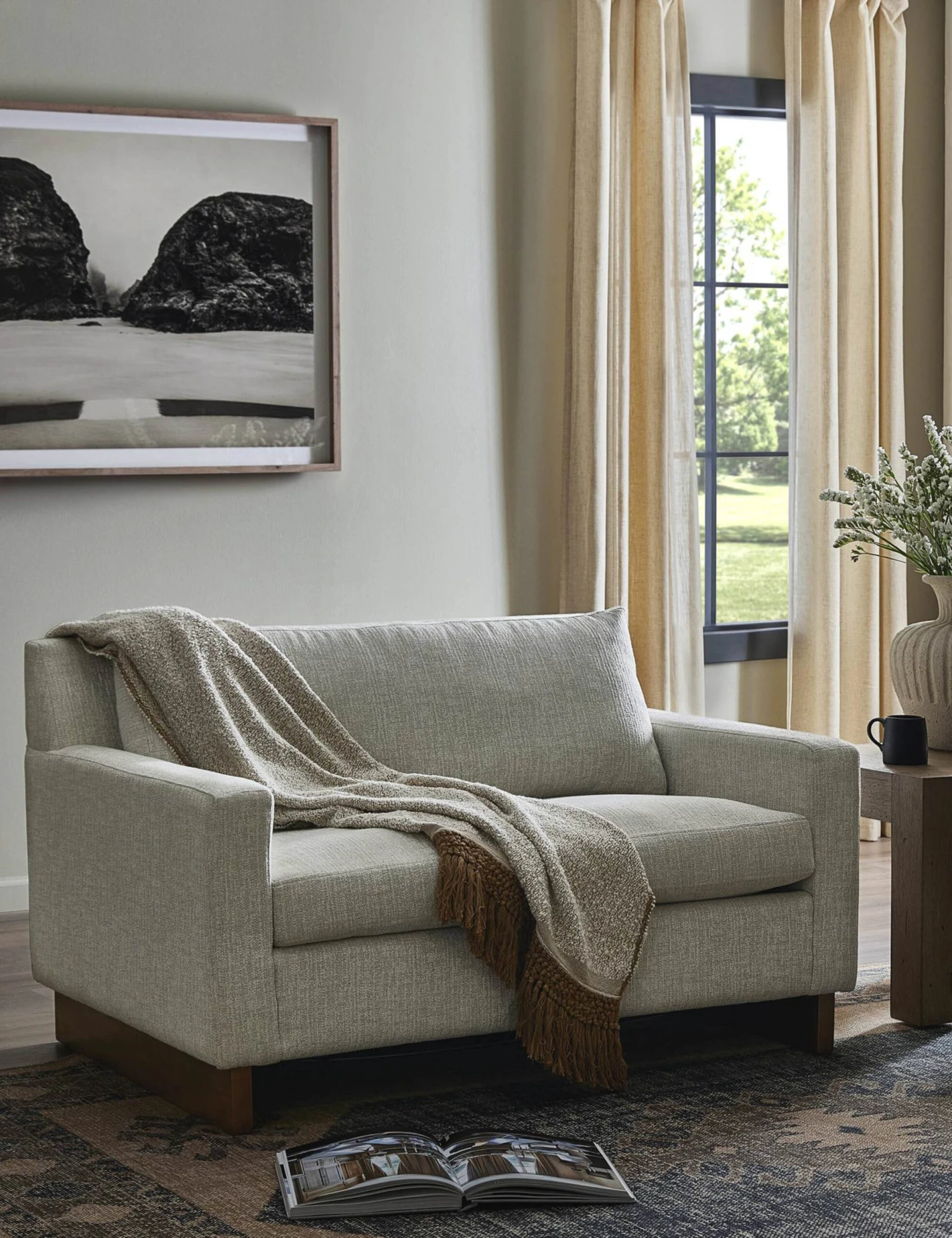 Tailored lines and textural upholstery fashion this sleeper chair with a chic, transitional style. Whether in your living room or a home office that doubles as guest quarters, it delivers quiet elegance with a multi-functional design. This generously proportioned chair-and-a-half offers easy comfort as a spacious seat or folded out into a twin-sized bed.