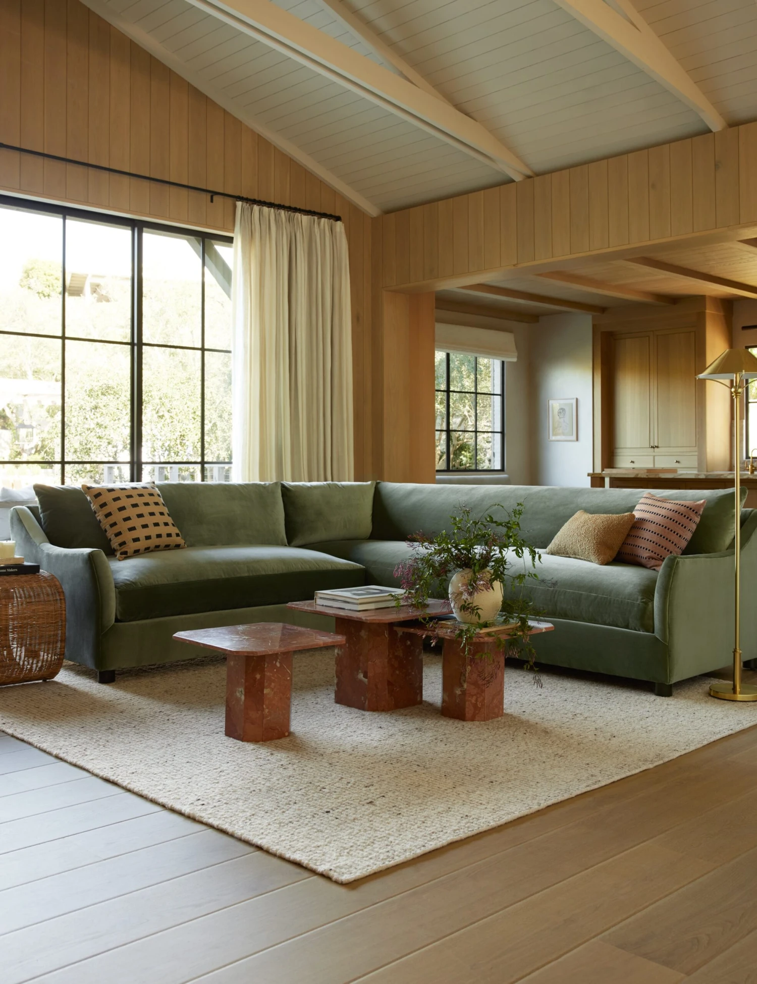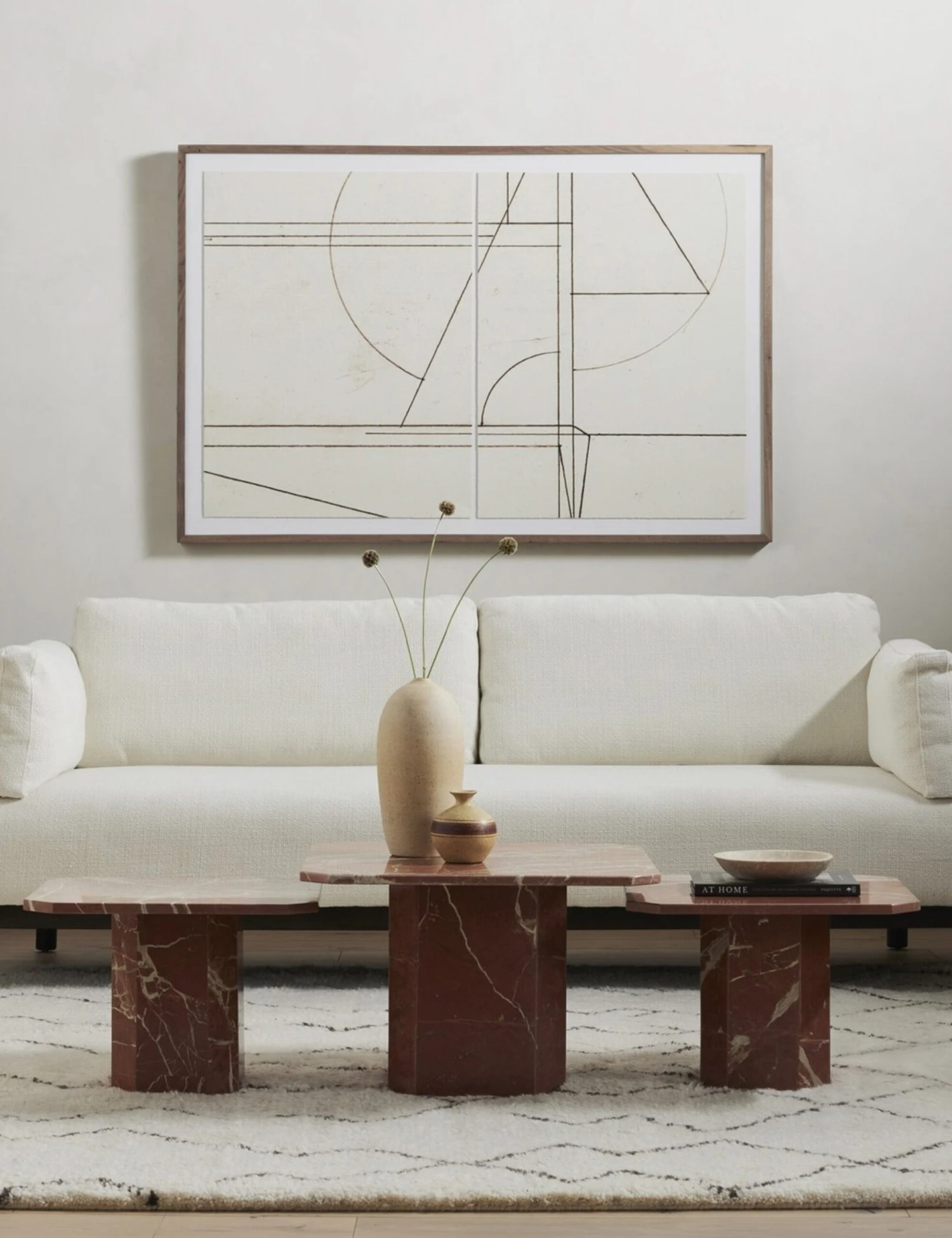 The Linari coffee table brings a clean geometric form to rust-red marble in a chic revival of 1970s Italian design. Its tailored precision is expressed in chamfered edges and angled corners, creating a distinctive coffee table with vintage allure.