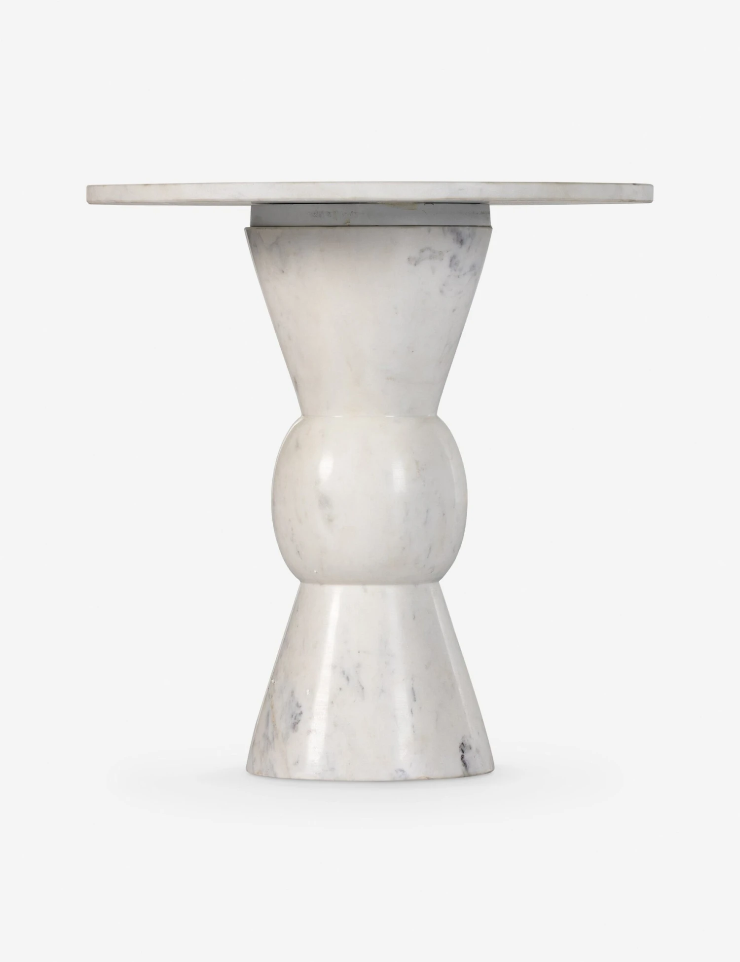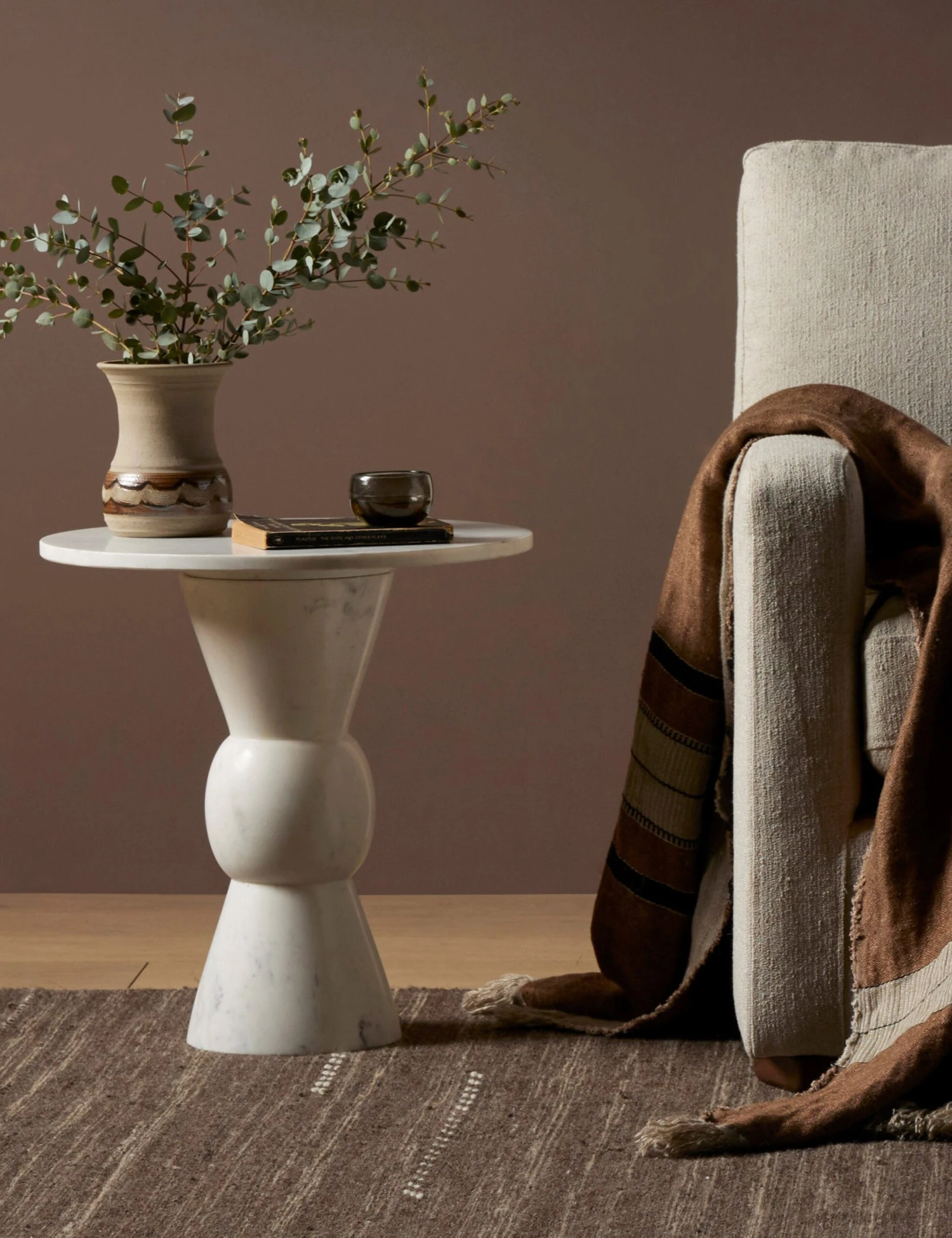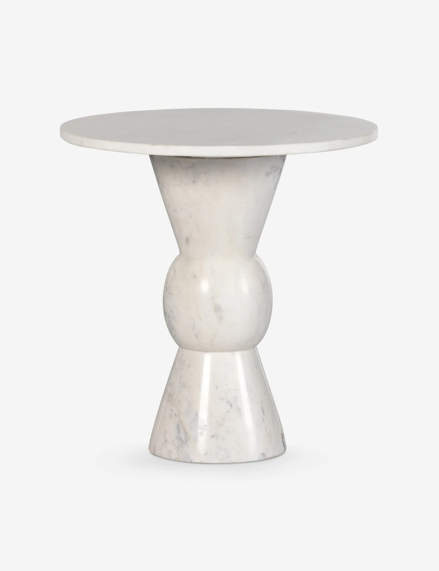 Add a touch of luxury with this polished marble side table. The turned base and round top fashion an elegant silhouette with a stately bearing. We love how versatile this piece is, whether styled as an end table or used as a pedestal for plants or decor.