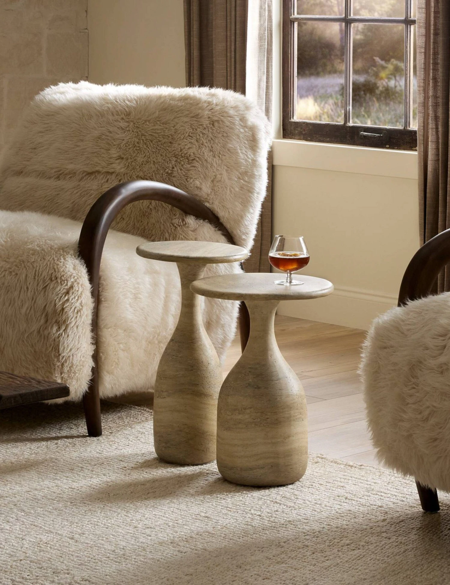 Softly shaped and grounded in texture, these nesting side tables are a striking set. Their fluid silhouettes are crafted from concrete with a marbleized finish, echoing the classic lines of handmade pottery. Styled as a layered pair, these end tables bring refined dimension to any space.