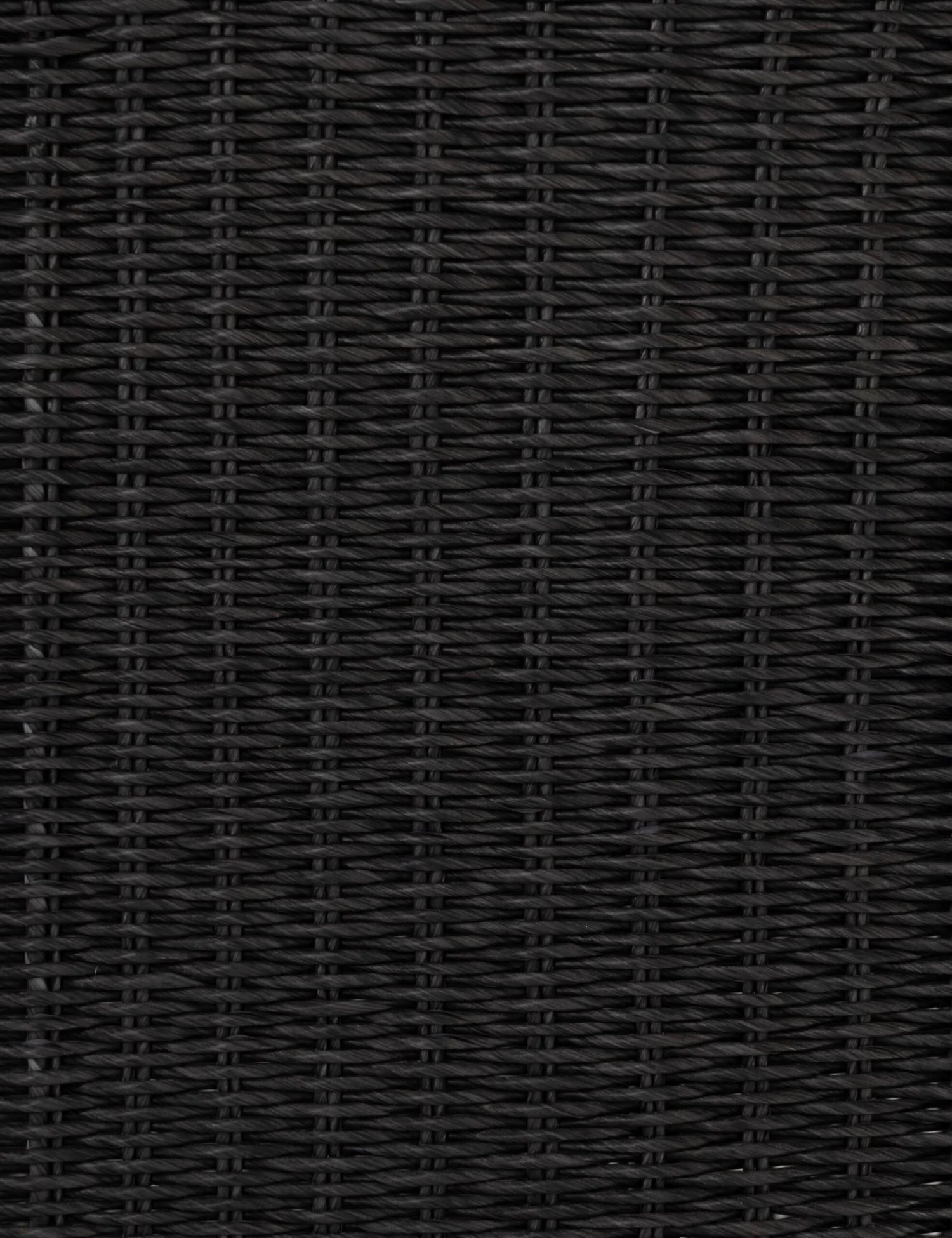 With its shapely, sling-like form, waterfall arm, and coal-colored finish, this accent chair is a nod to curvy seventies styling. Its all-weather wicker frame cradles durable tufted cushioning in a versatile white color palette. We love the idea of using this occasional chair to relax poolside, on your terrace, or even in your sunroom.