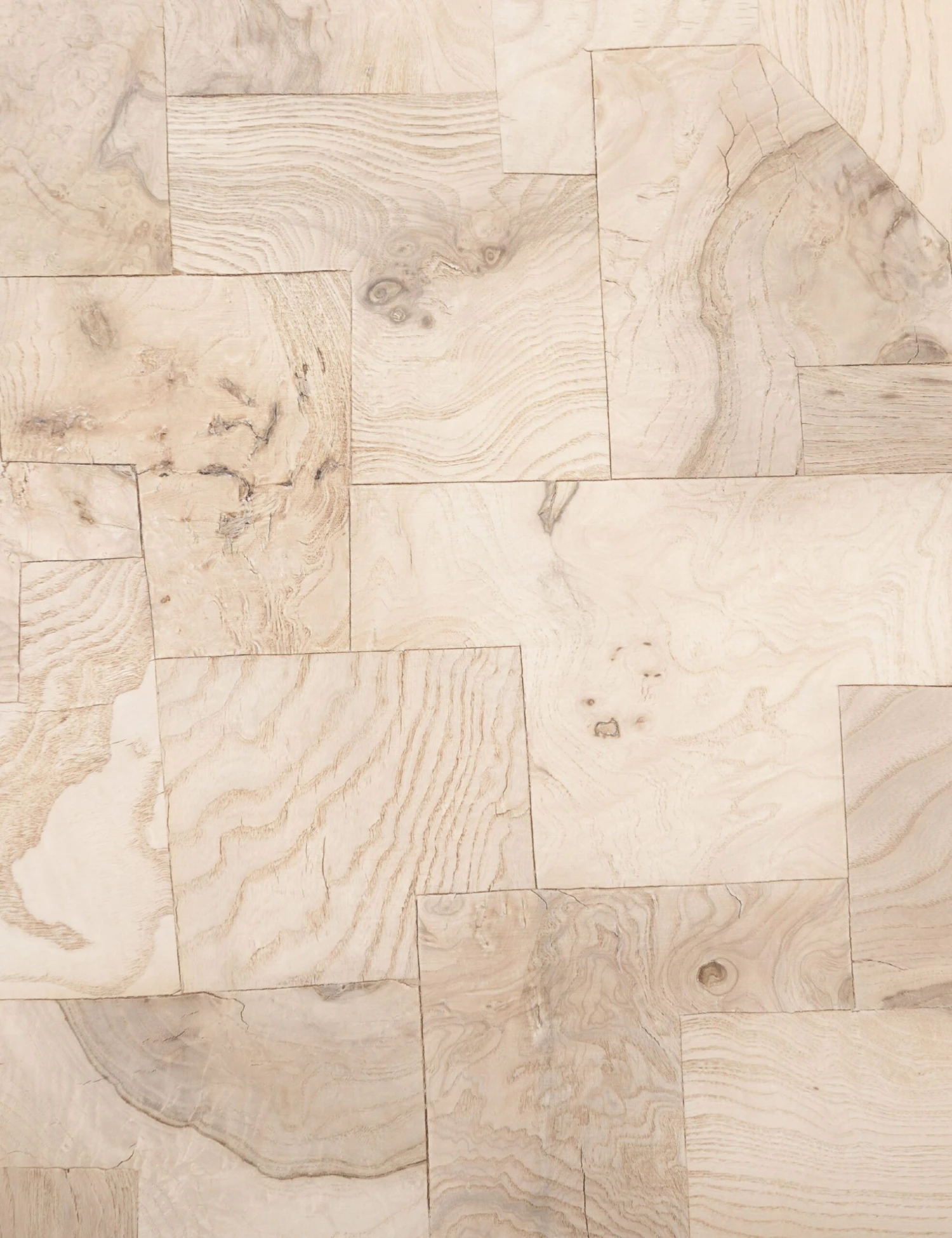 A distinctive profile displaying a bleached burl patchwork, cut and placed by hand, marks this desk as a striking focal point of your home office. Its polished design is finished with practical touches like push-latch open doors, rear cutouts, and a white-finished mahogany desktop that will accommodate any workload and look simply stunning bare. We love it for a fresh, refined home office space.